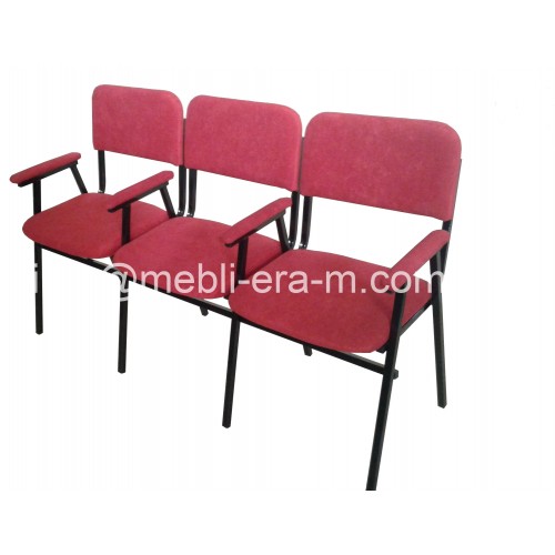 Секция стульев " Алиса" предназначена для общественных мест, для актового зала. Алиса прекрасно подходят для конференц-залов, зон ожидания и холлов. Ножки кресел к полу не крепятся, что позволяет перемещать секции без вреда для целостности конструкции и внешнего вида. Каркас кресел состоит из боковых и центральных стоек и стяжек, что позволяет собирать секции для необходимого количества посадочных мест. Стойки и стяжки изготовлены из стальной трубы квадратного сечения 20×20 мм с толщиной стенки не менее 1,2 мм. Исполнение возможно в различных цветах обивки ткани или искусственного кожзаменителя.Количество в секции возможно от 1 до 3.